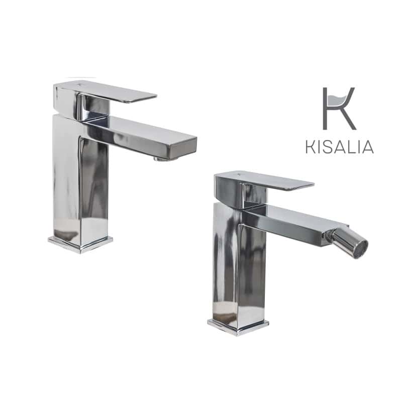 Set Miscelatore Lavabo Kisalia CUBE100 e Bidet Kisalia CUBE101 finitura CROMATA senza scarico