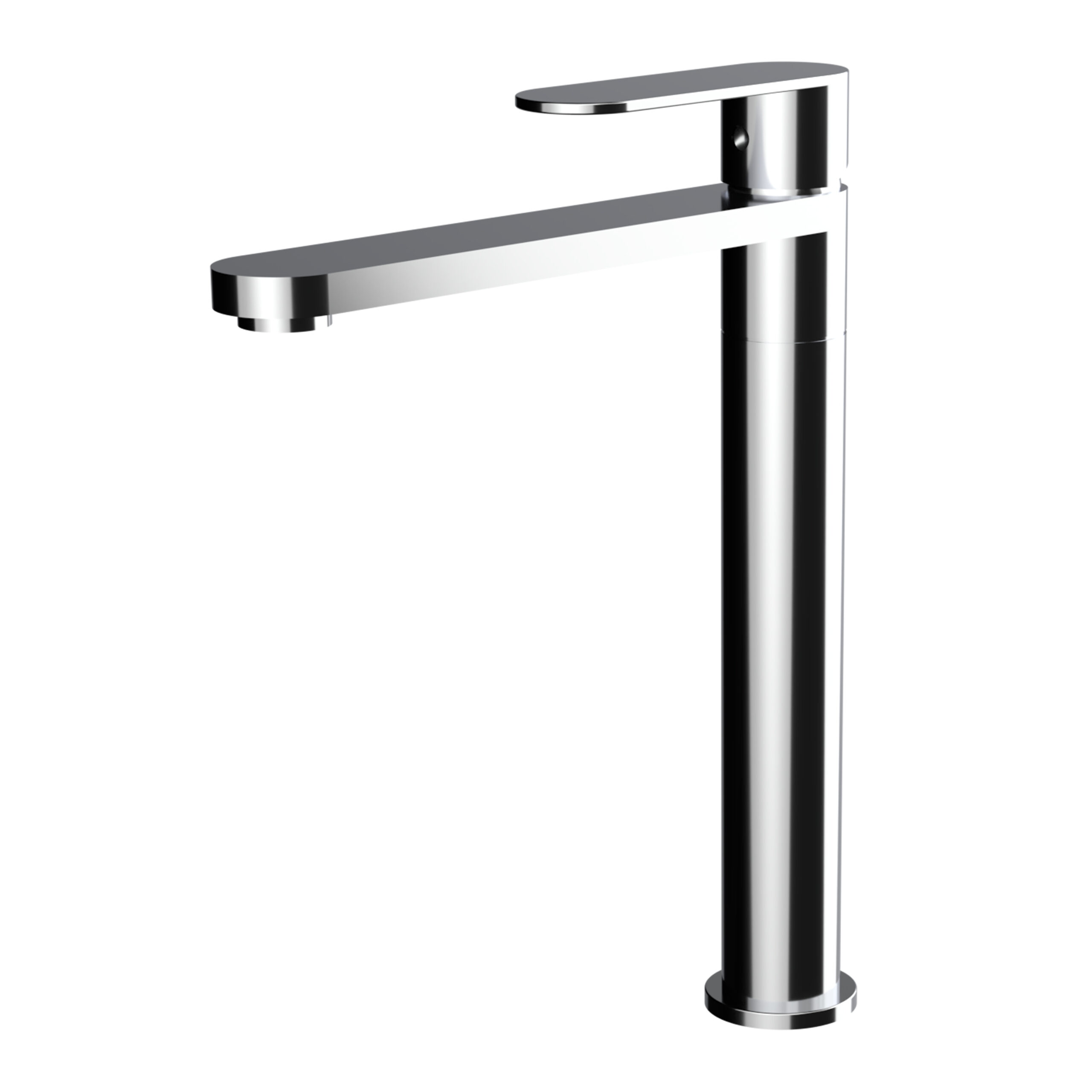 Il miscelatore alto per lavabo da appoggio della collezione FUSION in finitura cromata è pensato per chi cerca un elemento elegante e funzionale per lavabi freestanding. La combinazione tra leva e canna piatta e corpo cilindrico crea un design moderno e armonioso, perfetto per ambienti bagno contemporanei.